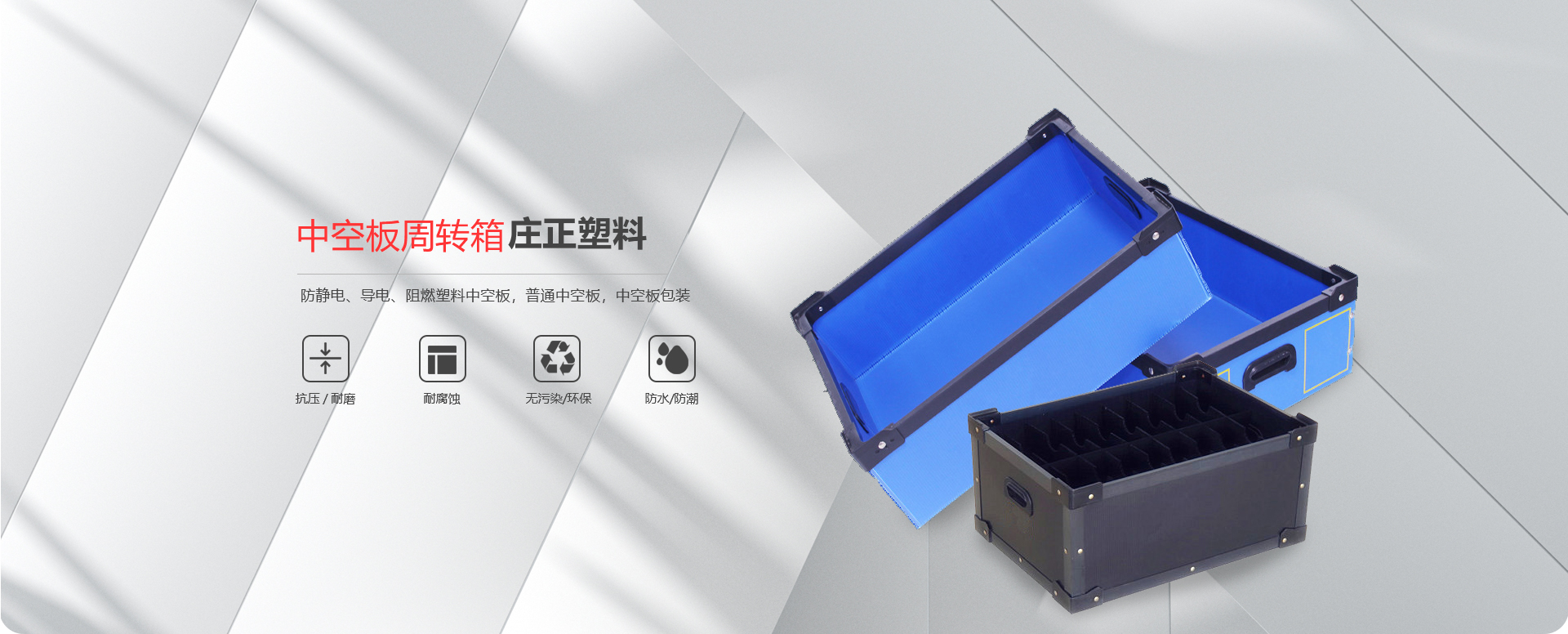 公司技術力量雄厚,生產設備先進、檢測手段齊全、產品品質優良、價格合理。公司堅持以優質的產品,滿意的售前、售中、售后服務,至真至誠,廣交朋友,為振興民族工業攜手前進,共創未來。 主要產品:圍板箱、普通塑料中空板,防靜電、導電塑料中空板,中空板周轉箱,中空板包裝箱,中空板墊板,中空板托盤、塑料包裝制品等系列產品。